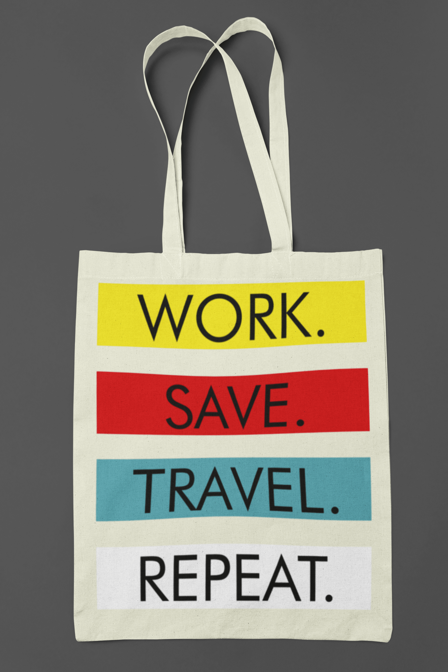 Work Save Travel Repeat Tote Bag | Tote Bag | Shoulder Bag | Market Bag | Accessories Bag | University Bag |